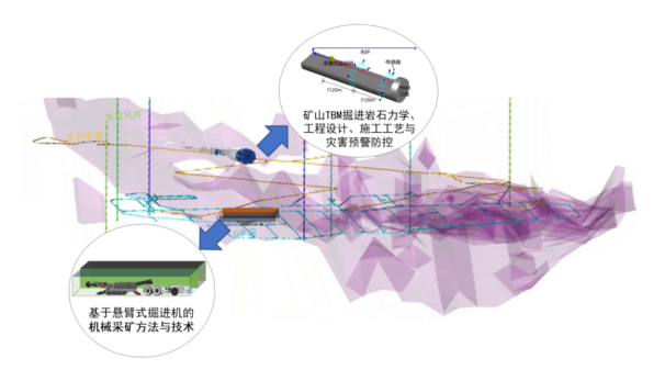 金屬非金屬礦山“鑿巖爆破”開采方式?jīng)Q定了采礦工藝流程無(wú)法實(shí)現(xiàn)連續(xù)作業(yè),而且爆破作業(yè)本身具有有害效應(yīng)與較高安全風(fēng)險(xiǎn)。隨著科技水平的發(fā)展,煤礦采煤機(jī)械、金屬非金屬礦山采掘機(jī)械及全斷面隧道掘進(jìn)機(jī)(TBM)等裝備與技術(shù)相互影響滲透,機(jī)械破巖裝備向著行業(yè)、技術(shù)融合的趨勢(shì)進(jìn)步,地下礦山迎來了由傳統(tǒng)鑿巖爆破開采向非爆機(jī)械連續(xù)開采的新跨越。機(jī)械連續(xù)開采技術(shù)是礦冶集團(tuán)的重點(diǎn)發(fā)展方向。技術(shù)方向在機(jī)械刀具破巖力學(xué)及優(yōu)化、機(jī)械采礦巖石力學(xué)、機(jī)械采礦工藝、機(jī)械采礦機(jī)電一體化選型配套、機(jī)械開挖巖體穩(wěn)定性控制及安全保障技術(shù)、金屬非金屬專用機(jī)械采掘裝備等方面取得了眾多創(chuàng)新研究成果,研發(fā)形成多項(xiàng)自主知識(shí)產(chǎn)權(quán)的新一代機(jī)械采礦裝備及配套產(chǎn)品,構(gòu)建出一套機(jī)械連續(xù)采礦的基礎(chǔ)理論與技術(shù)體系。自主研發(fā)的機(jī)械破巖試驗(yàn)平臺(tái)、機(jī)械破巖裝備選型系統(tǒng)、新型機(jī)械破巖懸臂式采礦機(jī)、便攜式可截割性測(cè)試分析儀等,已在眾多項(xiàng)目中起到關(guān)鍵支撐作用,并在國(guó)內(nèi)多家地下金屬非金屬礦山中實(shí)現(xiàn)了推廣與應(yīng)用。
