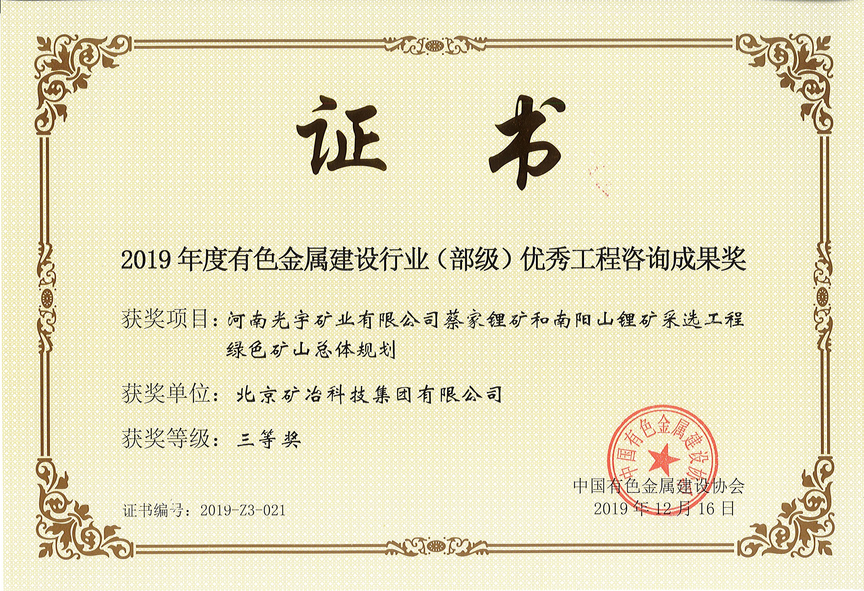 河南光宇礦業有限公司蔡家鋰礦和南陽山鋰礦采選工程綠色礦山總體規劃 三等