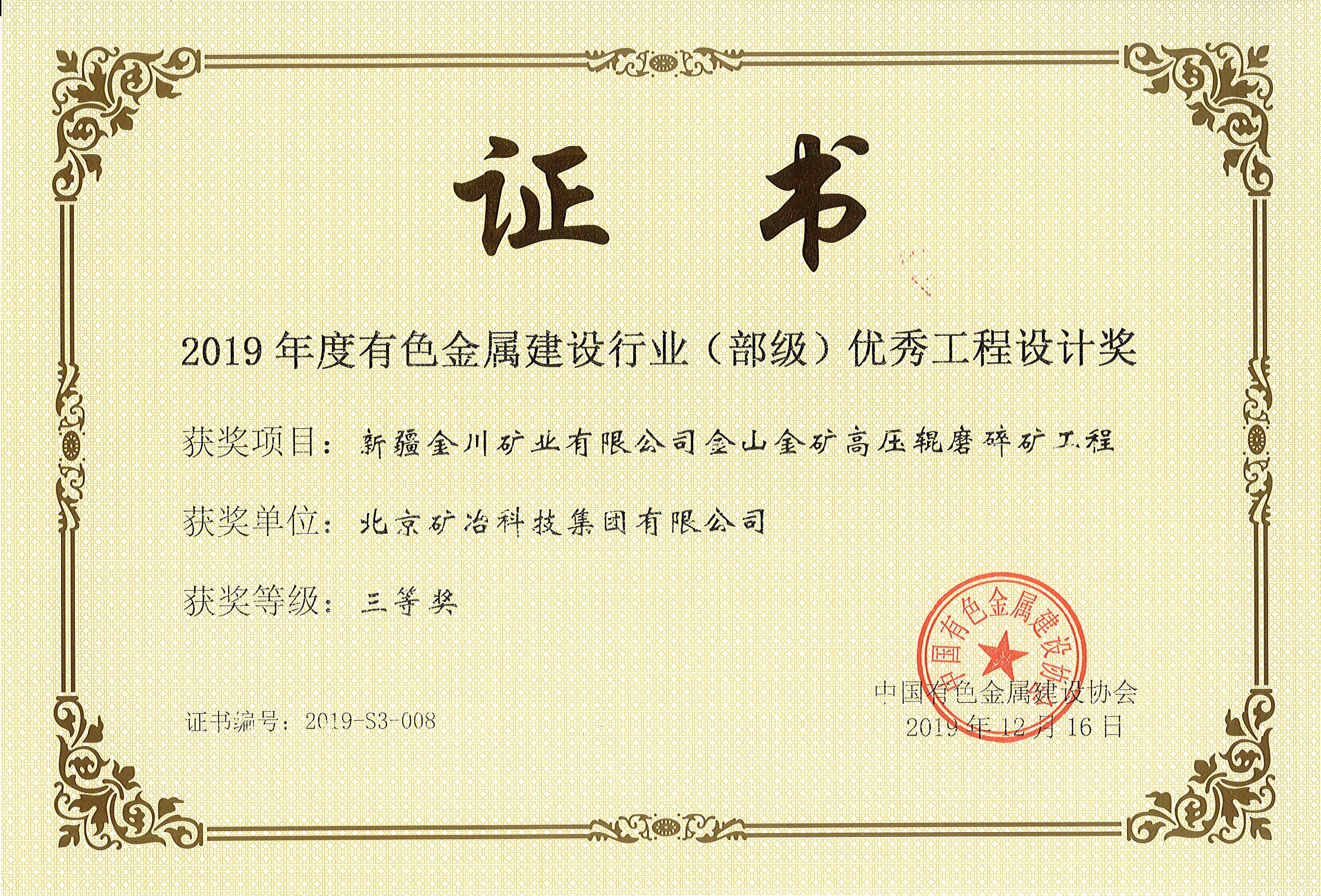 新疆金川礦業有限公司金山金礦高壓輥磨碎礦工程 三等