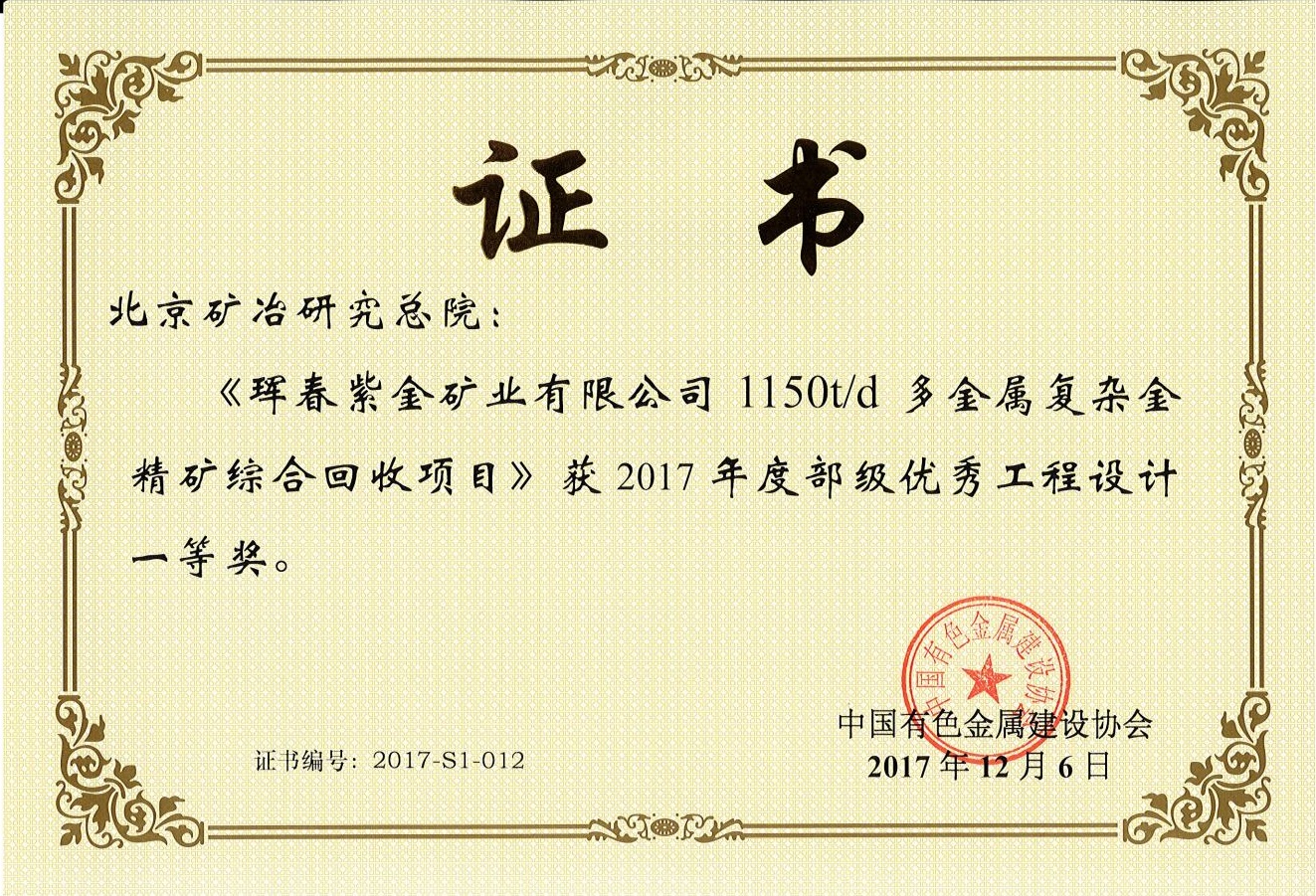 琿春紫金礦業有限公司1150td多金屬復雜金精礦綜合回收項目