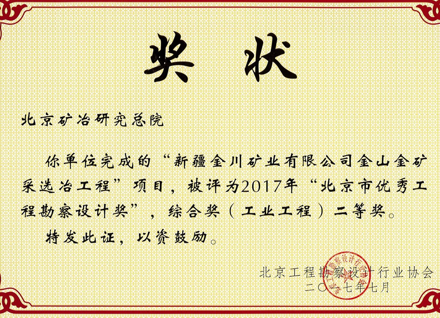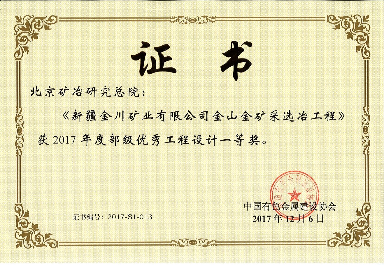 新疆金川礦業有限公司金山金礦采選冶工程——2017北勘設計獎