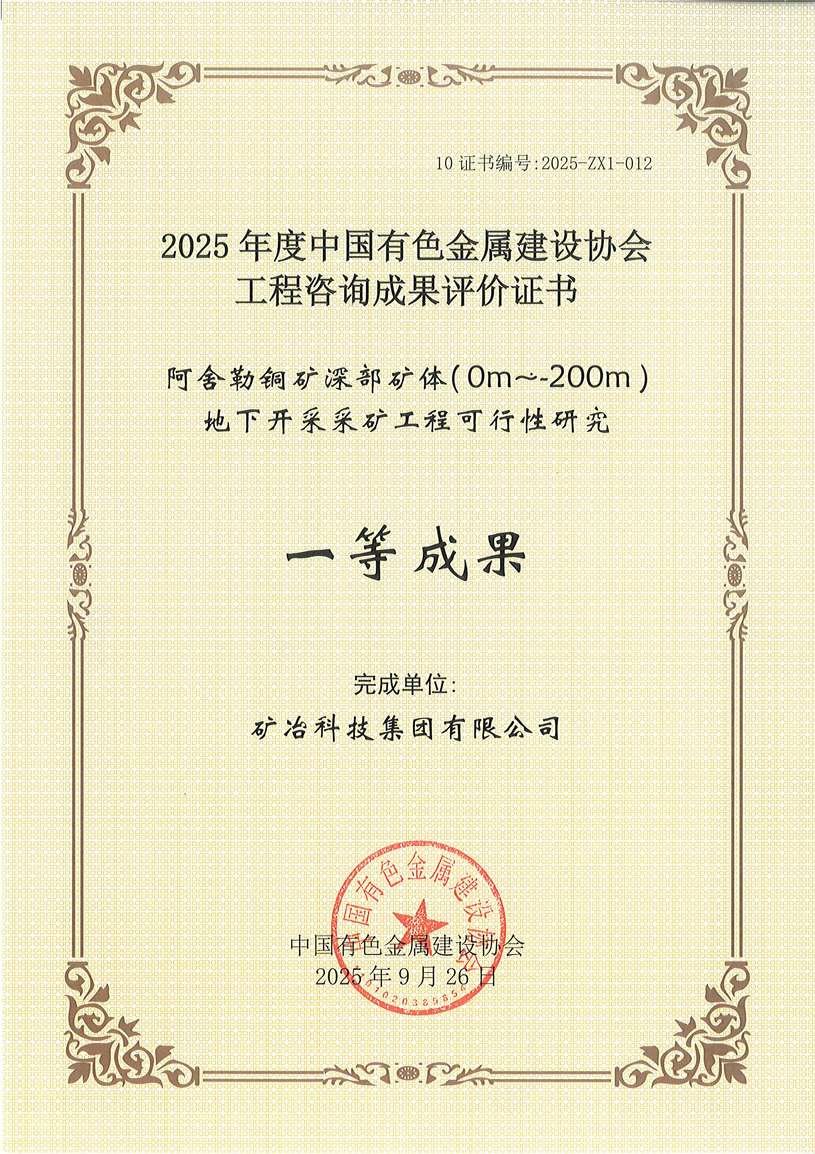 阿舍勒銅礦深部礦體(0m~-200m)地下開采采礦工程可行性研究