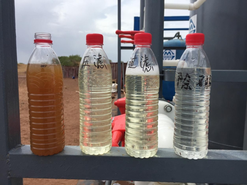 烏審旗返排液處理項目采用撬裝式處理裝置,防爆防腐,模塊化設計,廠內組裝調試,現場占地面積小,快速安裝調試并投用。該項目由礦冶集團提供處理設備、人員、藥劑等,在內蒙烏審旗壓裂作業現場進行壓裂返排液及酸化壓裂返排液的現場處理服務,處理量≥400m3/d,處理后全部用于回用(重復配制壓裂液),得到業主方的認可及好評。
